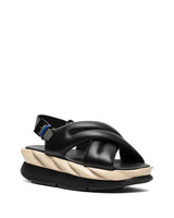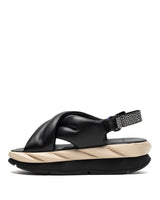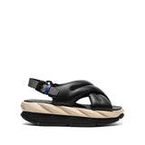 The Mellow Moa is an iconic cross-strap sandal in smooth sheep leather, featuring an adjustable back strap and contrasting metal buckle for a standout summer look.
