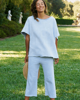 Cropped? Check. Wide Leg? Check. Outrageously soft Triple Fleece? Check. We’ve reinterpreted the traditional sweatpant into a cool, contemporary silhouette with a fashion-forward feel. This style looks just as good with a Capelet and tennis shoes as it does a Perfect Tee, denim jacket, and slides.