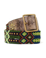 We have developed our own color and each belt is combined with leather and a detachable Brass or Nickel buckle with a signature hand-studded art motif.