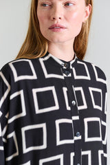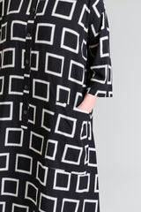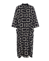 A long, oversized dress with an artistic graphic print. This dress will be an eye-catching and cool addition to your wardrobe. It's perfect for wearing simply on its own, without accessories.