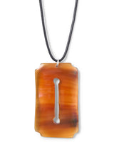 - Sterling silver, 89x50mm brown horn, leather cord.