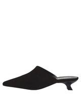 Soft suede enhances the luxurious feel of an elegantly tapered square-toe mule lifted by a modest kitten heel.