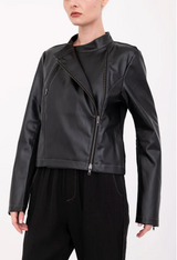 - Full zip moto jacket with zip chest pocket and zip cuffs