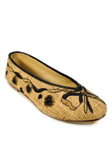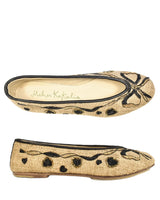 Darcey Ballet is a handmade ballerina, embroidered like a jewel for the feet. Crafted using an ancient technique with metal coils called dapka, the design combines delicate hearts and bows for a charming, playful look.
