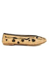 UPPER: hand-embroidered in metal coils (dapka) on jute with nappa trim