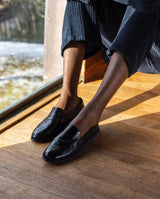 The smoking loafer was originally conceived for at-home-entertaining, whether in formal or dress-casual attire; this silhouette has become synonymous with luxurious lounging. In this vein, the York Loafer is designed to make you feel elegantly at ease wherever they take you. Subtle luxuries of the York include a slim-line trim above the sole. The construction is what is known as sacchetto, which is a specialty technique that produces a soft, flexible, glove-like fit. The sensation of ease is elevated by the York's leather welt and flexible, crepex sole.