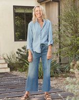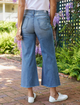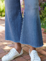 Introducing Galway! Our first-ever gaucho-style jean in Italian Dream Denim evokes the easy, carefree nature of our favorite Irish city. A cropped, hand-distressed raw hem, wide leg fit, and elevated trouser waistband have comfort covered.