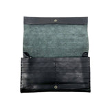 Dresden women's leather wallet/cross-over body bag from Johnny Farah's exclusive Atelier Collection. Made from 100% vegetable tanned, full grain Italian calf leather. Snap closure. Inside are two compartments divided by a zipper pocket in the middle. Plus six credit or visit card holders. All Hand-Stitched. Comes with detachable shoulder strap for wearing it cross-over body with custom made 100% oxidized brass buckle. 100% Handmade in Lebanon. Measurements approx. 5 x 8 x 1/2" (12.5 x 20 x 1.3 cm).