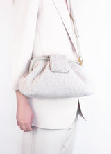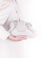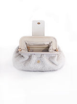 The Mini Teddy is a classic twist of a vintage style from the 1950s and now redesigned. This bag is lightweight and can be worn either on the shoulder, cross-body or clutch and includes an adjustable and detachable strap. It is made from 100% sheepskin and features a leather frame. The bag has a metal hinge closure allowing the bag to open widely. There is a snap button at the top to open the bag and the interior of the has a premium twill lining with a pocket.