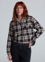 The Crosby Flannel is a relaxed, cropped button-down crafted from soft Japanese cotton shirting. Designed with chest pockets and a slightly boxy fit, it offers timeless flannel appeal with a modern silhouette. Perfect for layering or wearing on its own, it's an easy piece for everyday wear that balances comfort and style. Pair it with the Lenox denim in Double Stone.