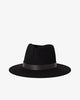 A timeless classic, Ross is crafted from 100% wool, featuring a tonal regenerative leather band and a signature gold logo screw closure. This bestselling fedora offers effortless packability, making it a versatile essential for any wardrobe. The structured shape and understated design embody both sophistication and functionality.
