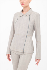 - Full zip moto coat with zip chest pocket and zip cuffs