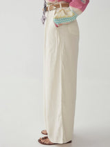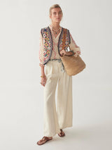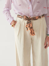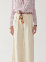 Cut in high quality linen, the button and zip pant is featured recurrently in our shoot this season since it is easy to pair with multiple pieces for multiple moods.