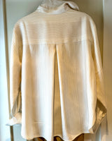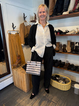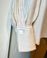 Ever wished for a blouse that could transform your outfit? We got you. The Betty blouse is crafted from luxurious silk. It features a beautiful pointed collar, back yoke detail, and the cuffed sleeves are perfect for a touch of that boss-level sophistication. With Vertical and horizontal stripes. You can wear yours with denim, pencil skirts, your favorite wide leg pants - seriously, anything goes!