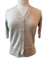 This is a Well Heeled essential. A half sleeve elbow length mock-neck with wide ribbed edge finishes in 100% cashmere. This cardigan runs true to size. We recommend taking your usual size. Made in Italy.