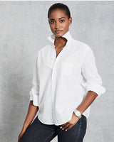 Meet Eileen. Relaxed in style and spirit, Eileen allows you to give back your boyfriend's shirt. This chambray feels a little like your best cotton poplin with a little linen. It's the perfect white shirt for year round (light for summer) and light enough to layer over. The perfect white blouse staple. Own at least one. (if we are out - send us a nudge - we likely have it on reorder!!!