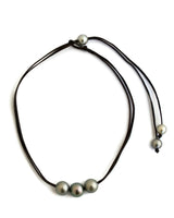 The Trinity Necklace is part of the Raw Elegance Collection. Drawing on our soft yet durable leather and Jhaña Pearl's signature Tahitiian pearls, the Trinity Necklace offers a minimalist approach to elegant beauty. With three large 12mm round Tahitian pearls at the center, this design is a Jhaña Pearl classic.