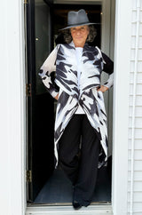 The Collare Coat is reminiscent of a waterfall. The beautiful pleated folds created within the chiffon material make it an easy to wear Alquema piece and is perfectly paired with the Long Estrella Dress.