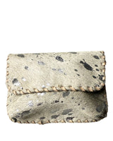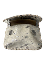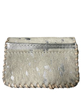 Artisan Handmade foldover card and coin pouch in cowhide leather with gold shimmer. Hand-stitched using leather strips creating beautiful whipstitch detailing.