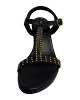 Featuring a suede-padded insole, a premium leather upper adorned with hand-studded brass artwork, and a secure buckle strap, every detail reflects exceptional craftsmanship. The leather sole ensures durability while maintaining a luxurious feel.