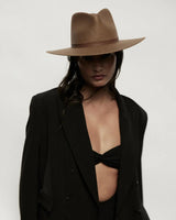 An edgy monochromatic take on the classic fedora. The structured fit creates a beautiful modern shape while staying true to the timeless design of our classic fedora. This effortless piece can easily be worn year-round and is meant for traveling with you wherever you go.