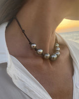 The seven seas refers to all the worlds oceans and each of the seven beautiful pearls on this strand represents each one. While these Tahitian pearls are all sourced in the Pacific Ocean in French Polynesia, how we hope to travel to all seven sea’s! This necklace features one gorgeous 14-15mm Tahitian pearl at its center with six 11-13mm Tahitian pearls surrounding it. With an adjustable length, it can be worn as a choker or longer length. This gorgeous necklace is an everyday favorite.
