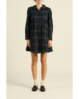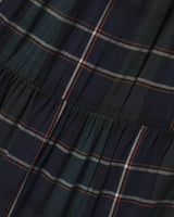 The Olive Dress has piping and pintuck detailing on the front bib, antique white buttons down the front, and a complementary ruffled-bib collar. This dress features our signature hidden side seam pockets for added functionality. Shown here in Windsor Plaid and made from our cotton viscose.