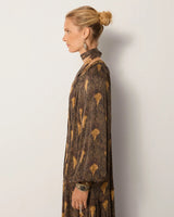 Styled here with boots to ground its fluid drape — an everyday take with depth and ease. It can also be paired with sandals for summer or layered under a jacket when the season cools.