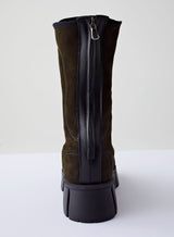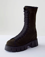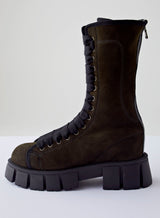 Chunky Sole Lace Up Boot | Dark Green Brown