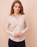 This long sleeve button front pocket shirt features our incredibly soft and luxurious cotton cashmere blend. This iconic fusion of fibres make for a lightweight feel and a soft interior that won’t ever pill, stretch, fade, or wrinkle.