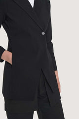 This blazer has a dressy cut that creates a beautiful silhouette. The waist is slightly emphasised and the fabric stretches to ensure ease of movement. It has a great fit and pairs well with any skirt.