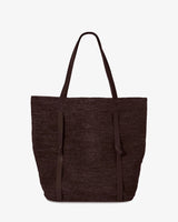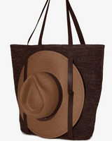 · Chocolate: Chocolate Raffia Bag + Dark Brown Leather Straps