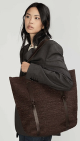 The signature beach bag meticulously crafted from durable raffia straw, with regenerative leather straps designed for practical hat-holding capabilities. Available in Chocolate, Black, and Natural, Tanner’s structured silhouette makes it a must-have for any destination.