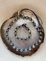 The Boho Bella Necklace, part of the Boho Couture Collection, is strung with an array of multi-color 9-11mm Tahitian pearls finely knotted on hand rolled leather. We transformed a traditional strand of pearls into a bohemian dream that still remains a timeless. 16" Length at shortest length, adjustable for added length.