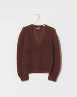 Shaggy Alpaca V-Neck Pullover | Marron
