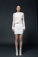 This adorable mini skirt in snowy winter white is made from luxuriously soft merino wool and looks smashing with a matching winter white sweater or top.