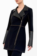 Asana Moto Coat with Vegan Leather | Black