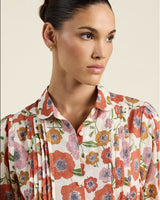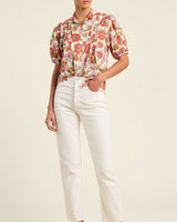 The Nadine Blouse is a short-puff sleeved blouse with a flattering curved hemline and petite pintucks that lend texture and hand crafted charm.