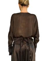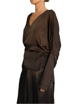 The wrap blouse pairs beautifully with the Jaga skirts and any other palazzo pant. This shirt exudes elegance and refinement as do all the Jaga pieces. Rayon that feels and looks like silk. Versatile Satin elegant wrap blouse that adds style to any bottom.