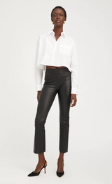 Our classic Ankle Leggings, made in our signature stretchy French plongé leather, feel like a second-skin due to their extreme breathability – a property exclusive to SPRWMN – are a wardrobe essential that can be worn all year long. These pants feature our signature Japanese elastic waistband for a figure-sculpting fit. Style them casually with slides and a tee, or dress them up with heels and a leather tube top.