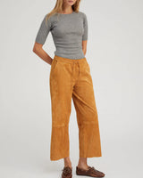 SPRWMN's take on an athletic track pant made entirely out of our buttery-soft suede. This cropped, wide-leg silhouette has a relaxed fit for a chic, sporty look. These pants are made in our signature French stretch-leather, so they feel like a second-skin and are extremely breathable for year-round wear. The adjustable drawstring allows for versatility and can be worn fitted to the waist, as desired.
