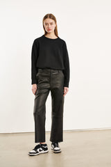 A classic wide-leg trouser silhouette made entirely in high-grade, structured leather that maintains it shape wear after wear. This staple style ticks all of the boxes, featuring high-end tailoring at the waist, a low-rise fit, baggy fit and functional pockets. Perfectly oversized, these can easily be worn casually with a t-shirt and trainers, or dressed up with a heel.