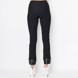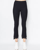 The fit of our bestselling Mita crop flare legging, updated with an edgy leather step hem. Style them with one of our silk camisoles and matching tech stretch jackets for a fun spin on suiting, or wear them dressed down with a jersey top and sandals.