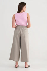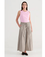 These cotton poplin palazzo pants offer a comfortable and stylish look. With a gathered waist and adjustable drawstring, they provide a personalized fit, while the pockets add functionality and style.