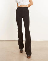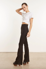 Our iconic black suede super flare pants are infused with 70s-inspired details like these signature patch pockets. Fitted with a concealed zip fastening at the side for easy wear, and a dramatic flare at the ankles for that retro look. This ever so trendy silhouette offers a wide range of styling options. Wear them casually or dressed up and paired well with platform shoes or loafers, a chunky cardigan or a vintage tee.