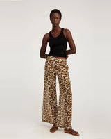 A chic wide leg pant made from slightly sheer, smooth and airy silk chiffon. Cut in a wide leg silhouette, these pants are designed with a comfortable stretchy elastic waistband for easy, pull-on wear. A chic style for day or night, style these with the matching button down or a classic tank top.