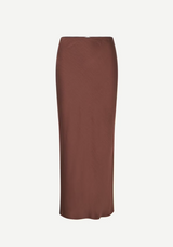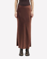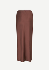 Bias-cut midi skirt with a slim fit. Zipper and hook closure on the side. Elastic waistband with scalloped edges. Main material made from 100% linen.