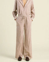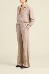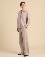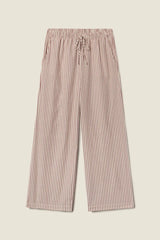 The Vera Pant is a full-length pant with a flattering straight let cut, side pockets and a slim drawstring waist casting with elastic for a comfortable fit. Shown here in Burgundy Stripe and made from our soft cotton.