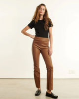 Leather Ankle Flare Pants with Princess Seams I Walnut