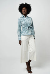 This style fits true to size. This shirt is fitted through the waist, but we recommend you ordering your typical size. See our sizing guide here. Model is 5'9" and wears a size 6.